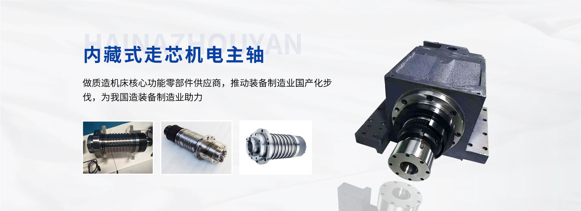 公司致力于為中高數(shù)控機床提供自主研發(fā)自主品牌的電主軸系列產(chǎn)品,通過堅持不懈的技術(shù)攻關(guān)和持之以恒的品質(zhì)管理,嚴(yán)格生產(chǎn)工序控制,售前售后的緊密跟蹤逐步形成一套完整成熟的業(yè)務(wù)體系。為不同類型機床提供主軸設(shè)計,現(xiàn)有數(shù)控車床主軸單元,數(shù)控車床電主軸、加工中 心電主軸及直聯(lián)機械主軸,走心車床電主軸,機械主軸,磨床電主軸,光伏主軸等系列主軸產(chǎn)品。